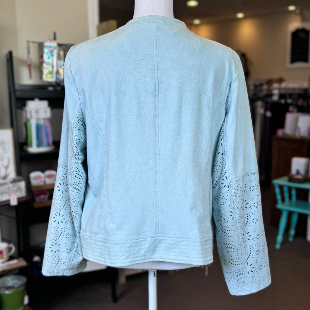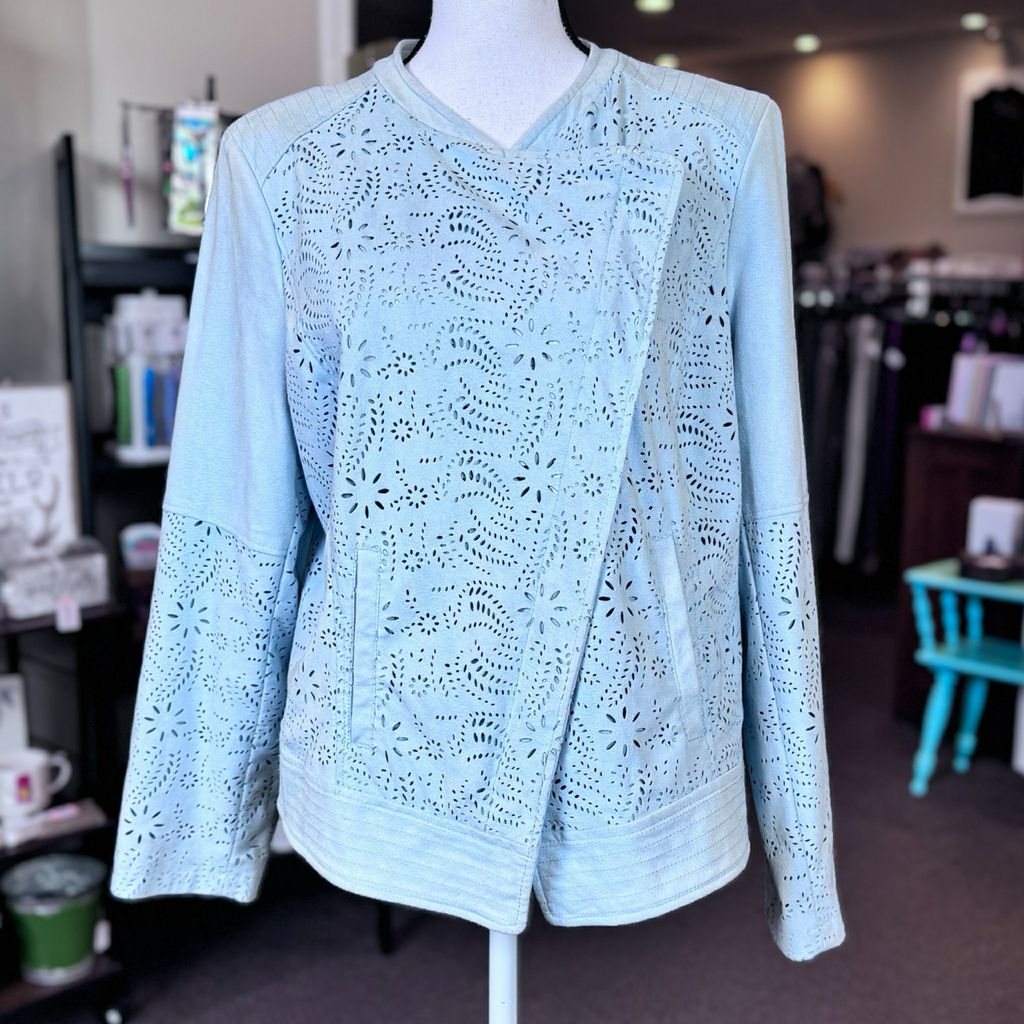 Chico's Faux Suede Leather Perforated Moto Jacket - Size Large