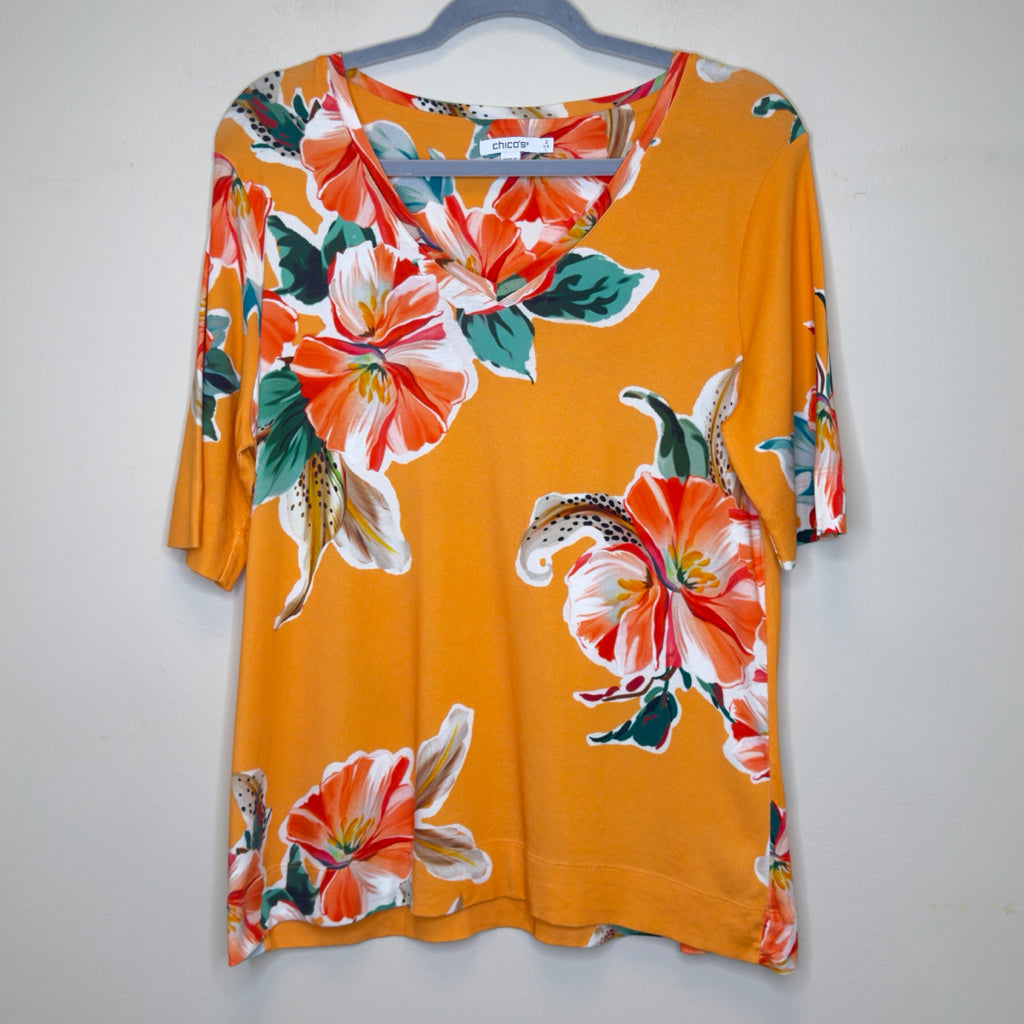 Chico's Pima Lillies Everyday V-Neck Tee - Size Large