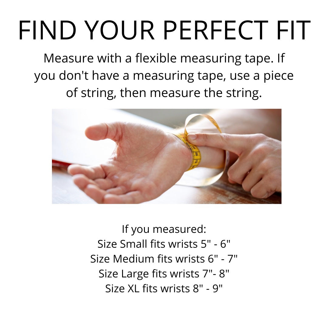 Measurement instructions are in the photos. Put your bracelet size in the comments at checkout.