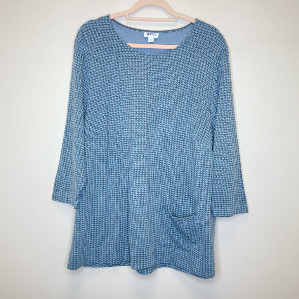 J. Jill Ponte Tunic Top Houndstooth Blue Pocket - Size 3X