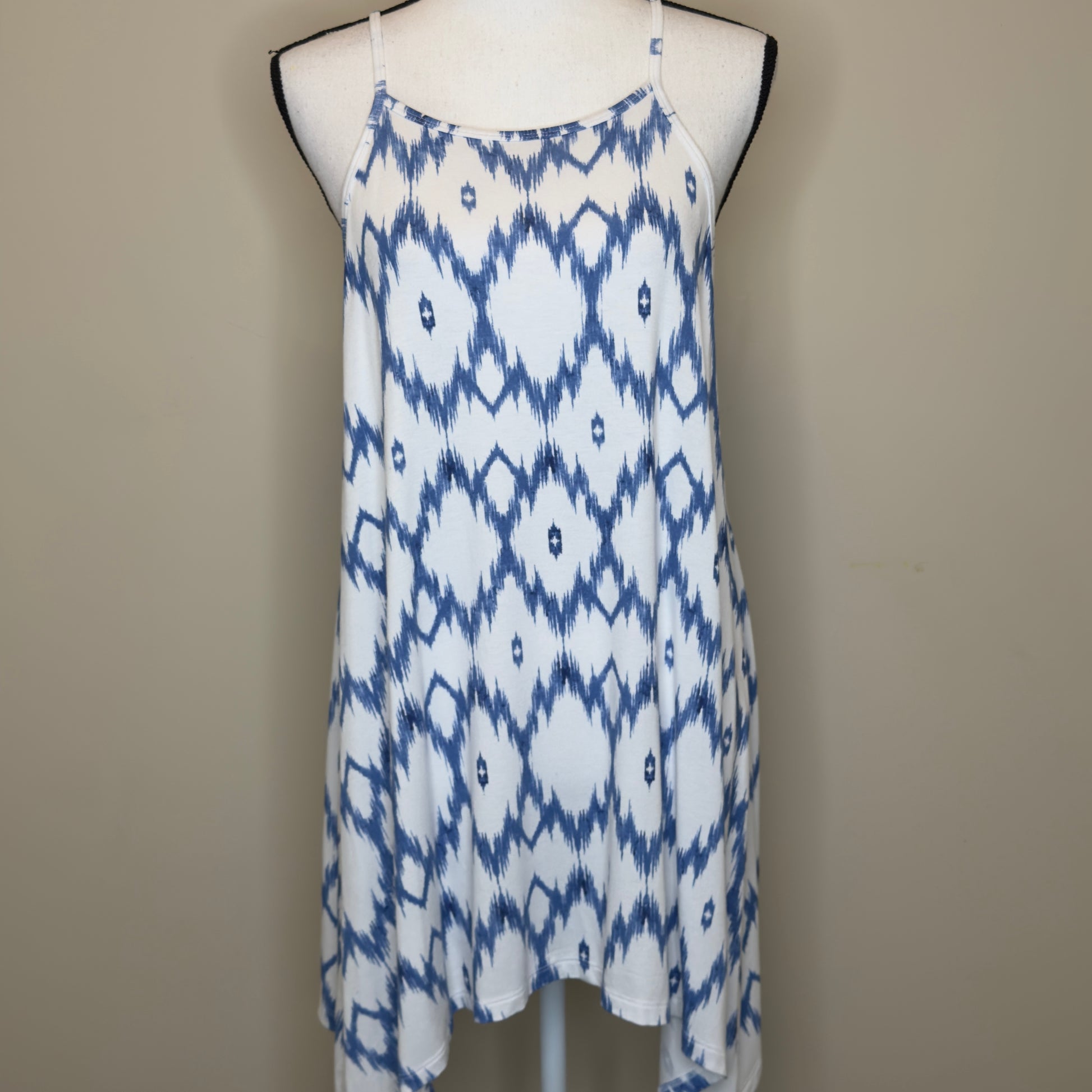 Torrid Super Soft White & Blue Ikat Print Tank Top - Size 1X